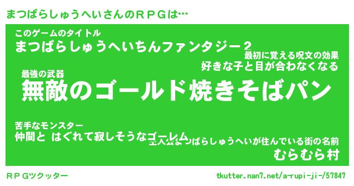 | 胡散臭い通販商品みたいなあだ名 | 『億万長者になれる霊験あらたかなお札…その名も「まつばらしゅうへい」』 |