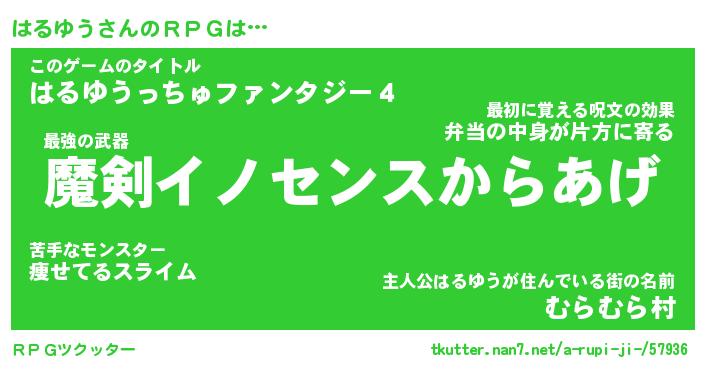 | ファンタジー風あだ名 | 『ハルフェル』『エターナルハルユウー』 |