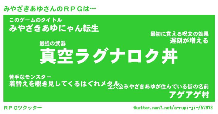 | ヒーロー風カッコイイあだ名 | 『スーパーミヤザキアユ』『天弓騎士ミヤ』 |