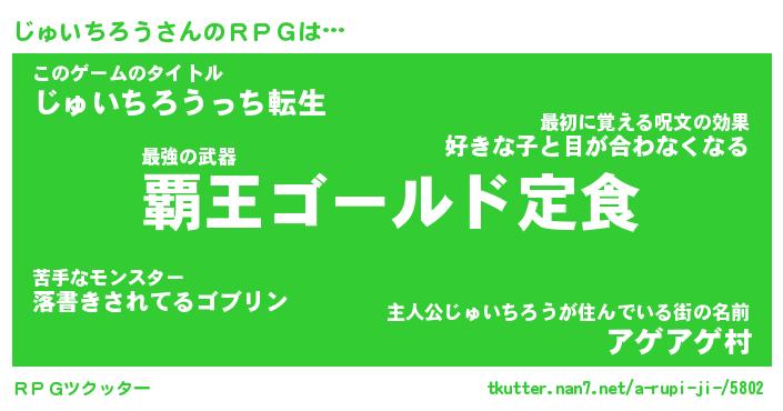 | 胡散臭い通販商品みたいなあだ名 | 『億万長者になれる水晶球…その名も「じゅいちろう」』 |