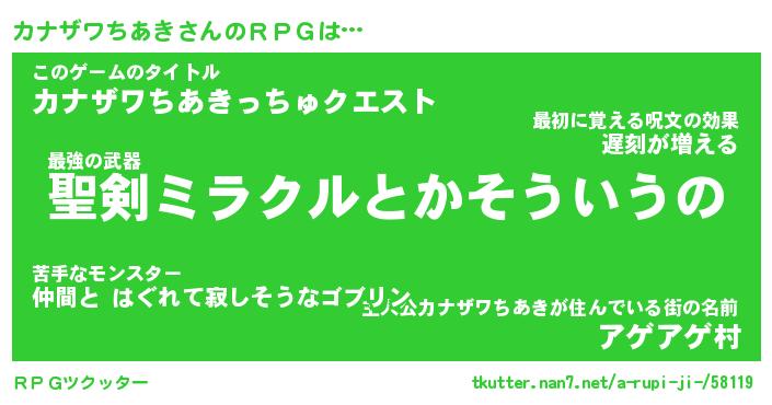 | ヒーロー風カッコイイあだ名 | 『スーパーカナザワチアキ』 |