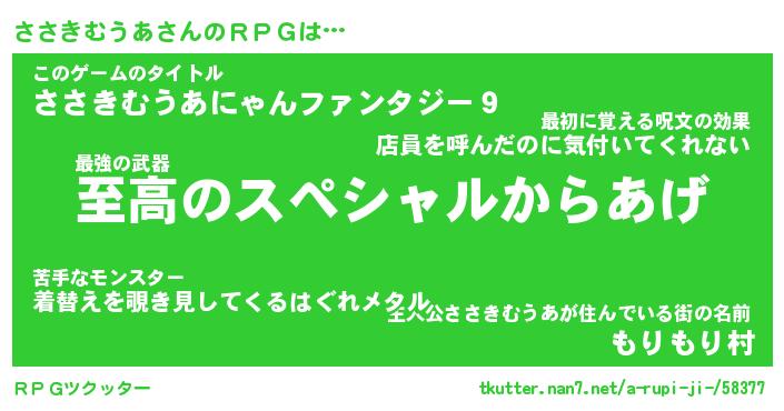 | ヘコむあだ名 | 『ささにー』『牛乳』『ささ太郎』 |