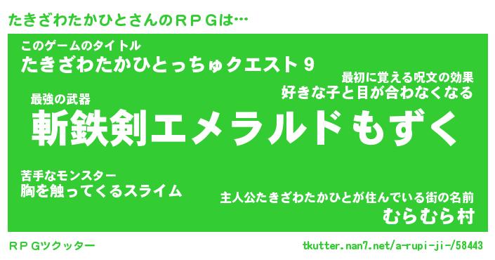 | 伝説のあだ名 | 『伝説のスナイパーたきざわたかひと』 |