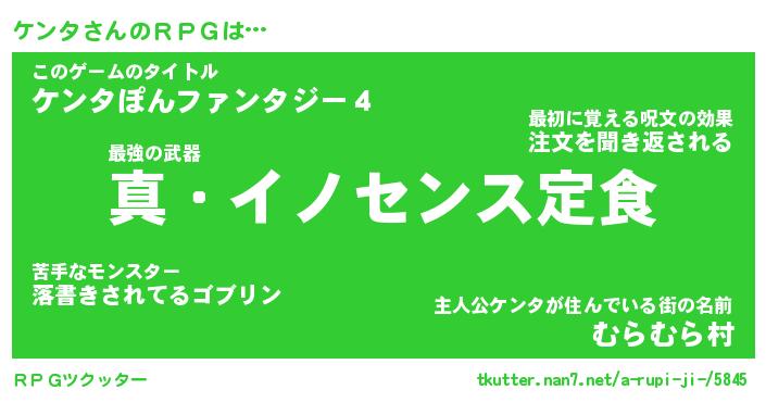 | 伝説のあだ名 | 『封印されしスナイパーケンタ』 |