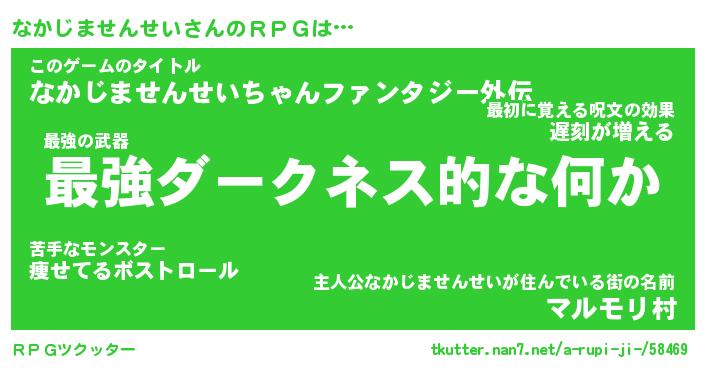 | 男性向けラノベタイトル風あだ名 | 『ナカジマセンセイアートオンライン』 |