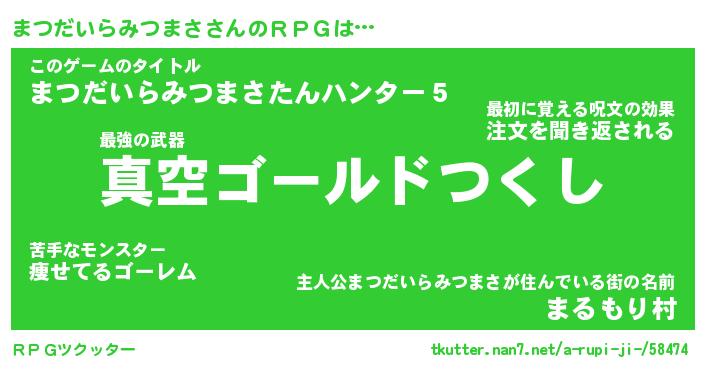 | 伝説のあだ名 | 『封印されしスナイパーまつだいらみつまさ』 |