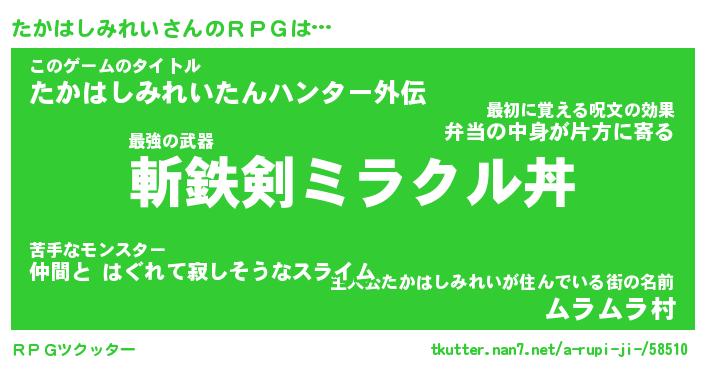 | 伝説のあだ名 | 『伝説の竜騎士たかはしみれい』 |