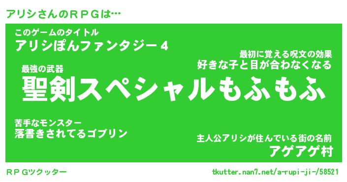 | 意味不明あだ名 | 『ペロリンアリシ』『アリシフォーエバー』 |
