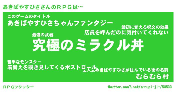 | 伝説のあだ名 | 『不死鳥の竜騎士あきばやすひさ』 |