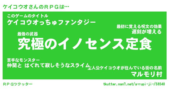 | ファンタジー風あだ名 | 『ケイフェル』『エターナルケイコウオー』 |