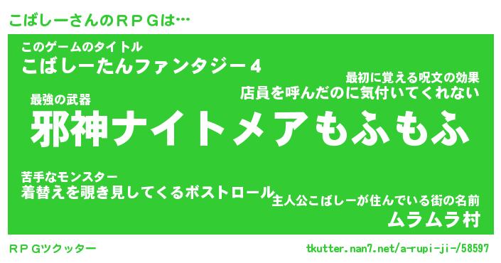 | 男性向けラノベタイトル風あだ名 | 『コバシーアートオンライン』 |