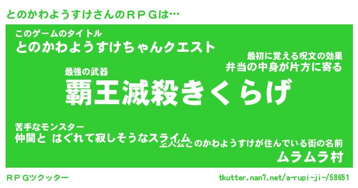 | ヒーロー風カッコイイあだ名 | 『スーパートノカワヨウスケ』 |