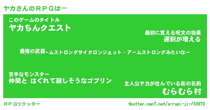 | 伝説のあだ名 | 『伝説の竜騎士ヤカ』『最古の忍者ヤカ』 |