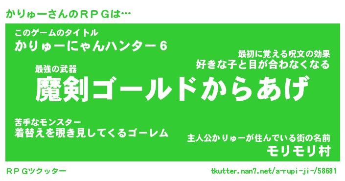 | 男性向けラノベタイトル風あだ名 | 『かりゅーの憂鬱』 |