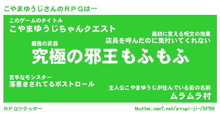 | 男性向けラノベタイトル風あだ名 | 『コヤマユウジアートオンライン』 |