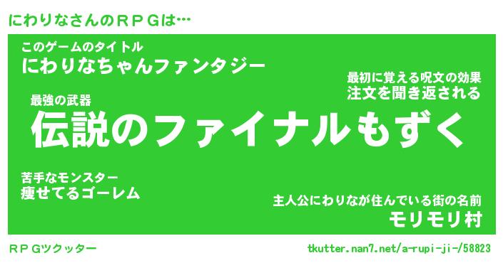 | 意味不明あだ名 | 『ペロリンにわりな』『永久保存にわりな』 |