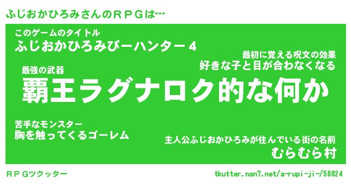 | 男性向けラノベタイトル風あだ名 | 『フジオカヒロミアートオンライン』 |