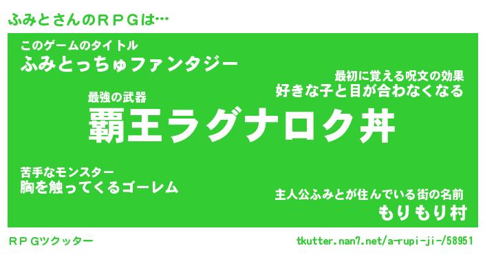 | 男性向けラノベタイトル風あだ名 | 『フミトアートオンライン』 |