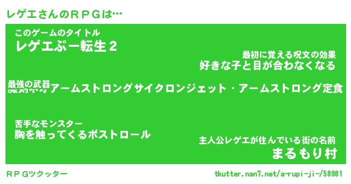 | ヘコむあだ名 | 『レゲにー』『なまこ酢』『レゲ太郎』 |