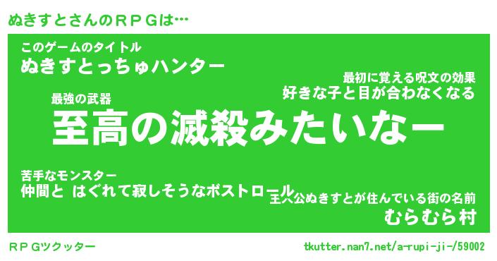 | ヒーロー風カッコイイあだ名 | 『スーパーヌキスト』『天弓騎士ヌキ』 |