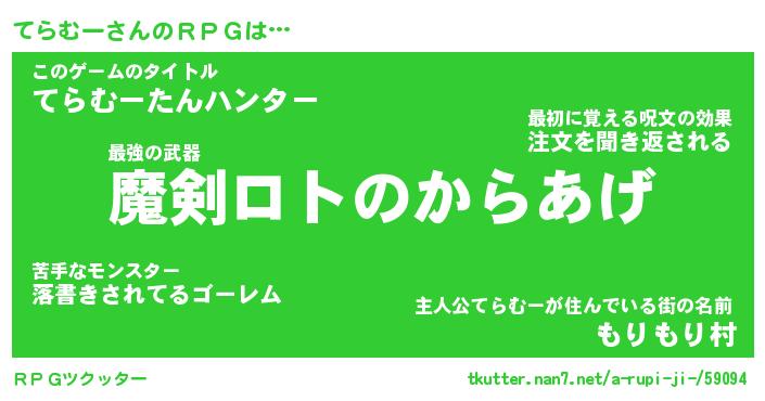 | 男性向けラノベタイトル風あだ名 | 『てらむーの憂鬱』 |