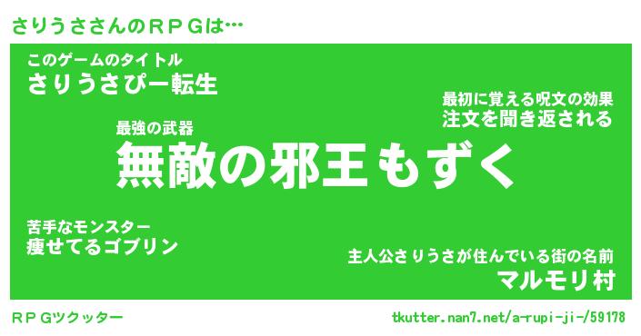 | 伝説のあだ名 | 『封印されし傭兵さりうさ』 |