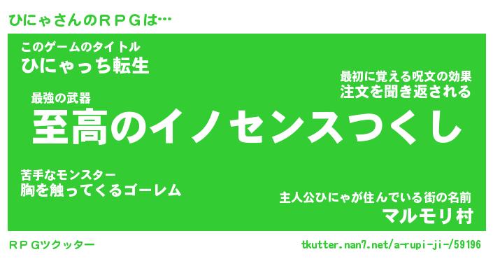 男性向けラノベタイトル風あだ名 | 『ヒニャアートオンライン』 |