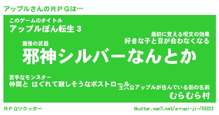 | ファンタジー風あだ名 | 『アッフェル』『エターナルアップルー』 |