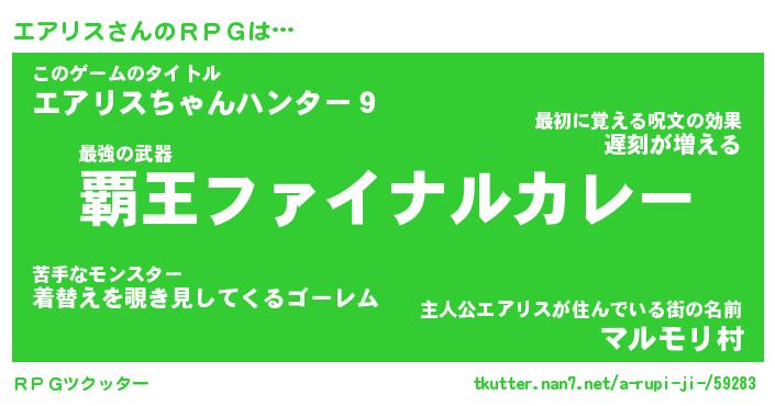 | 男性向けラノベタイトル風あだ名 | 『エアリスアートオンライン』 |
