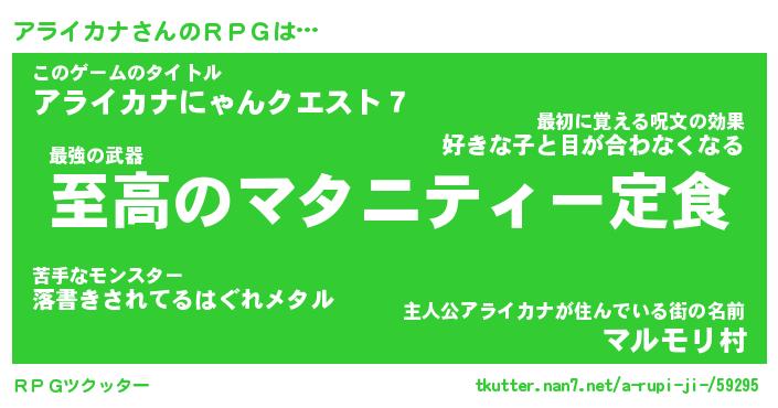 | 男性向けラノベタイトル風あだ名 | 『アライカナアートオンライン』 |