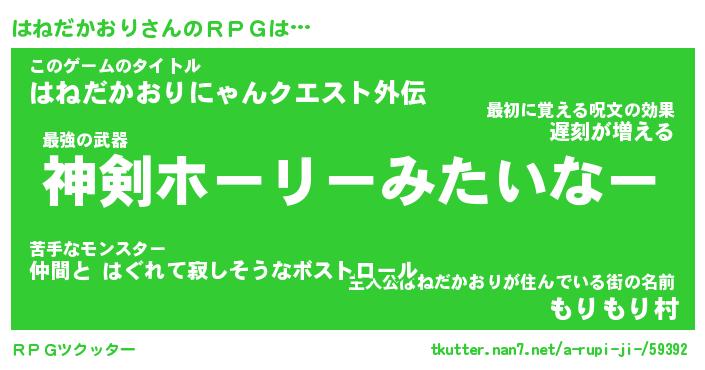 | 女子向けラノベタイトル風あだ名 | 『はねだかおり姫と円卓の騎士』 |