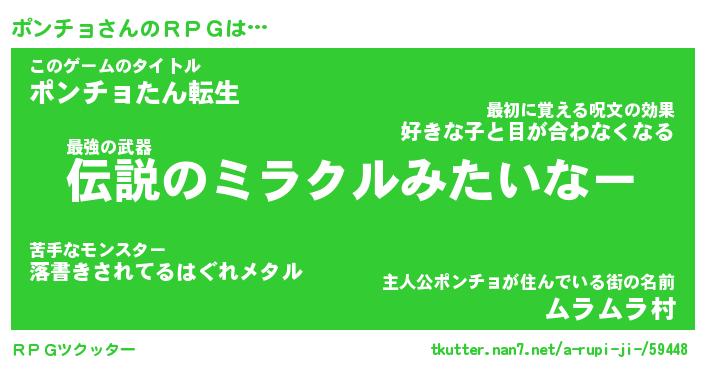 | 男性向けラノベタイトル風あだ名 | 『ポンチョの憂鬱』 |