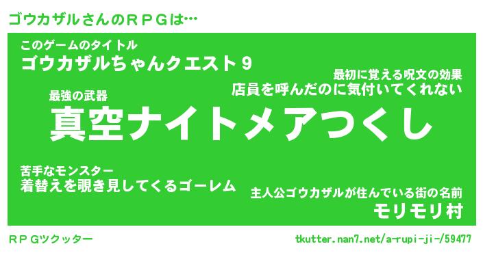 | 男性向けラノベタイトル風あだ名 | 『ゴウカザルアートオンライン』 |