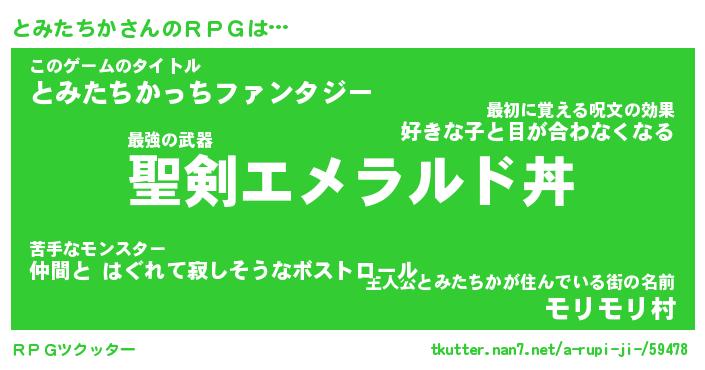 | ファンタジー風あだ名 | 『トミフェル』『エターナルトミタチカー』 |