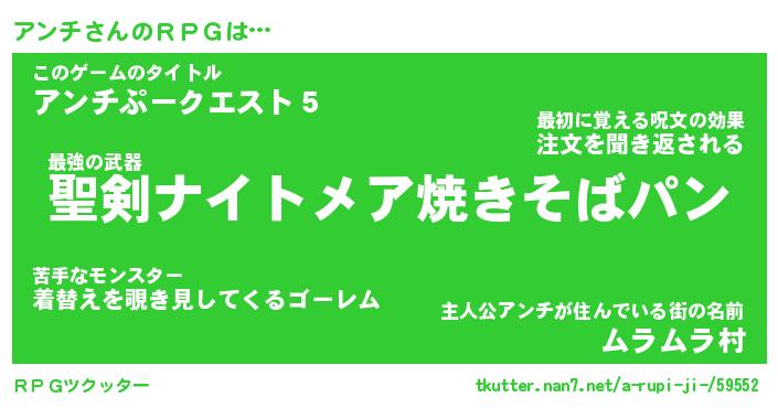 | 伝説のあだ名 | 『伝説のスナイパーアンチ』 |
