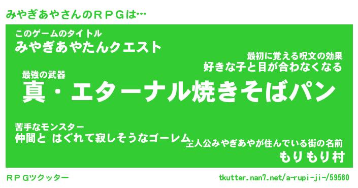 | ファンタジー風あだ名 | 『ミヤフェル』『エターナルミヤギアヤー』 |