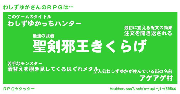 | 伝説のあだ名 | 『伝説の傭兵わしずゆか』 |