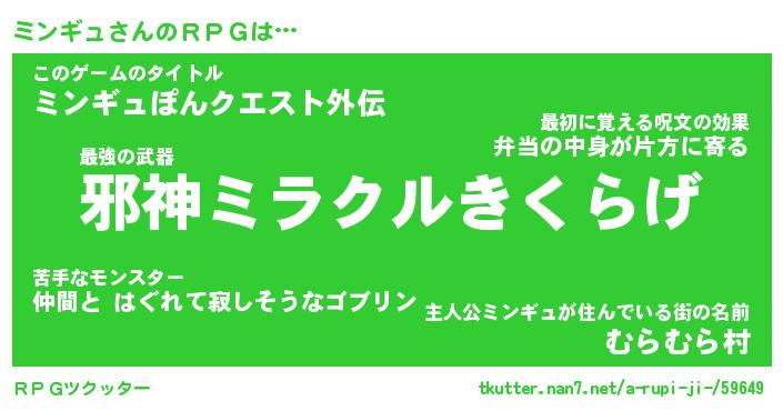 | 男性向けラノベタイトル風あだ名 | 『ミンギュアートオンライン』 |