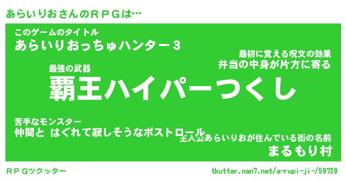 | 伝説のあだ名 | 『封印されし竜騎士あらいりお』 |