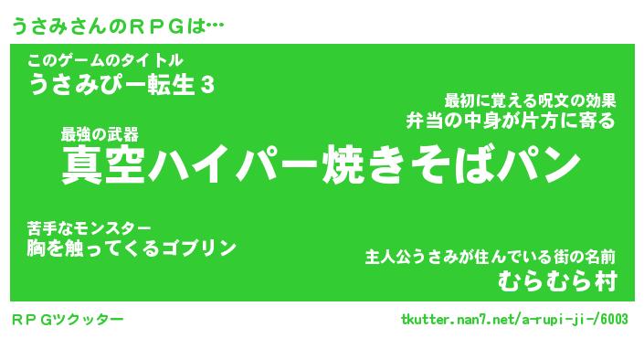 | ピコ太郎風あだ名 | 『ウコ次郎』『ピウ六郎』『ウサ次郎』 |