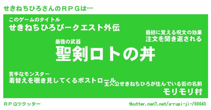 | 伝説のあだ名 | 『伝説の竜騎士せきねちひろ』 |
