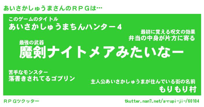 | 男性向けラノベタイトル風あだ名 | 『あいさかしゅうまの憂鬱』 |