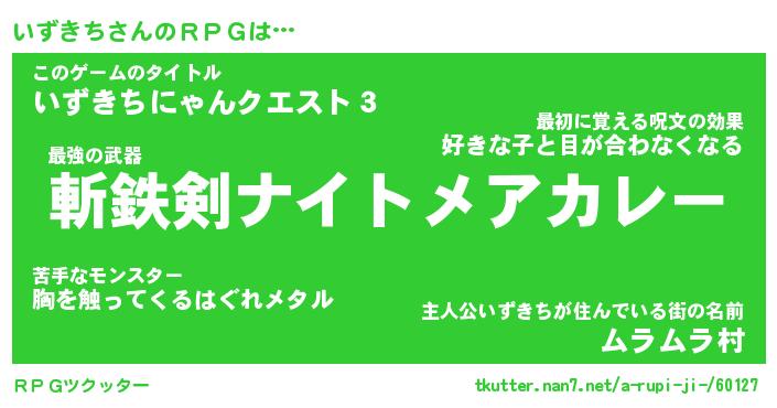 | ヒーロー風カッコイイあだ名 | 『スーパーイズキチ』『天弓騎士イズ』 |