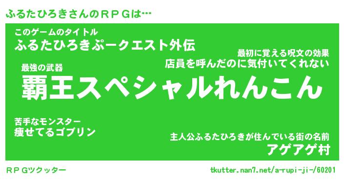 | 胡散臭い通販商品みたいなあだ名 | 『億万長者になれるブレスレット…その名も「ふるたひろき」』 |