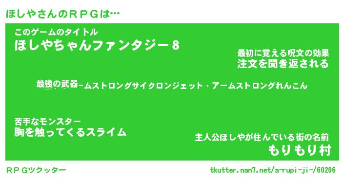 | 男性向けラノベタイトル風あだ名 | 『ホシヤアートオンライン』 |
