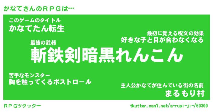 | 男性向けラノベタイトル風あだ名 | 『かなての憂鬱』 |