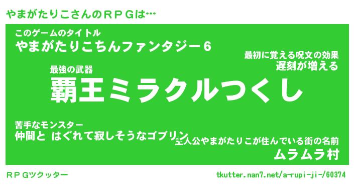 | 男性向けラノベタイトル風あだ名 | 『ヤマガタリコアートオンライン』 |