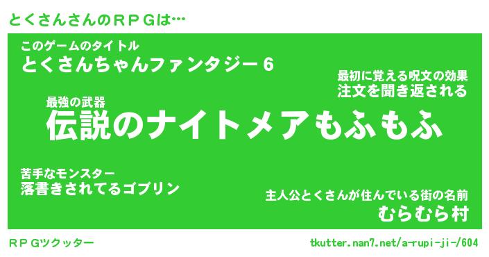 | 男性向けラノベタイトル風あだ名 | 『とくさんの憂鬱』 |