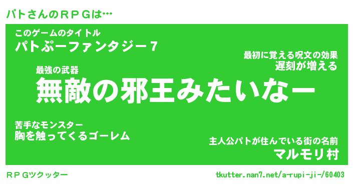| 男性向けラノベタイトル風あだ名 | 『パトアートオンライン』 |