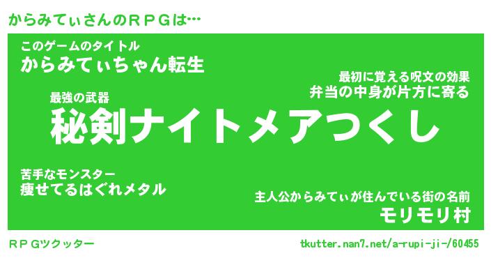 | 男性向けラノベタイトル風あだ名 | 『からみてぃの憂鬱』 |